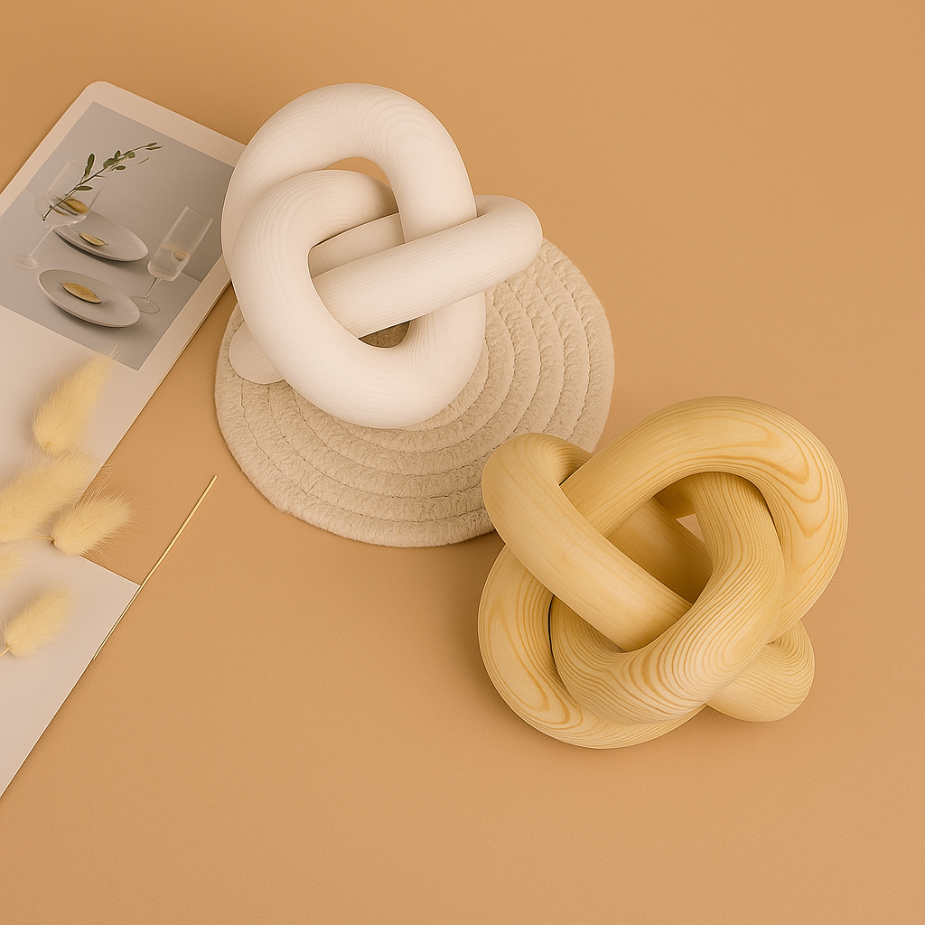 Breng natuurlijke elegantie en moderne kunst samen in je interieur met de Eira Unity – Tafeldecoratie. Dit unieke houten decoratieobject in de vorm van een knoop staat symbool voor verbondenheid, harmonie en balans. Perfect om te gebruiken als woonaccessoire, tafeldecoratie of design eyecatcher in de woonkamer, eetkamer, slaapkamer of kantoor.